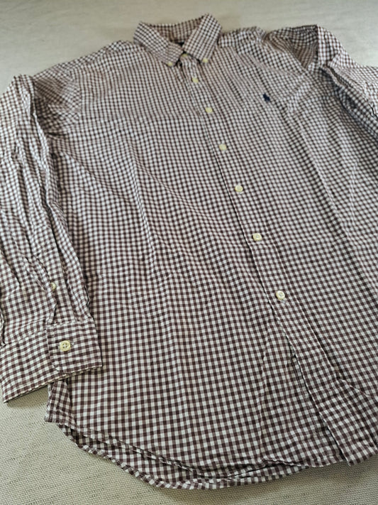 001085 Polo Ralph Lauren Button down shirt size L Brown/ White checkered