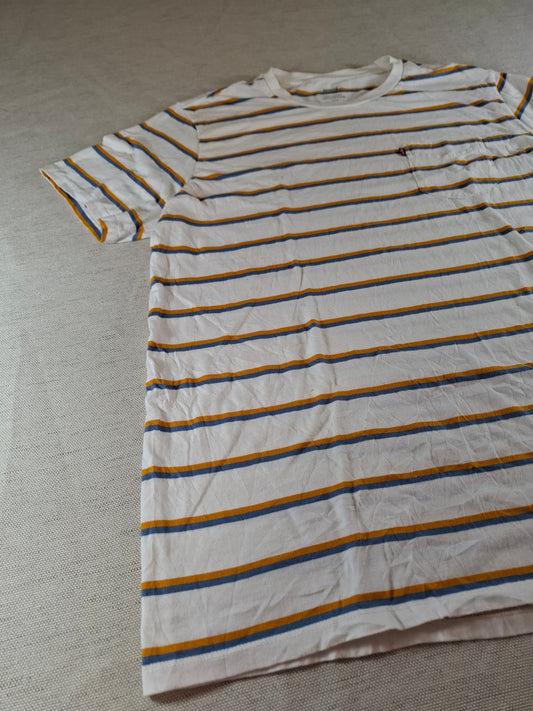 001137 Levi's T-shirt size L White/ Yellow/ Blue striped.