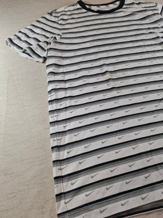 001132 Nike T-shirt size L Grey/ Black/ White + swoosh all over the shirt.