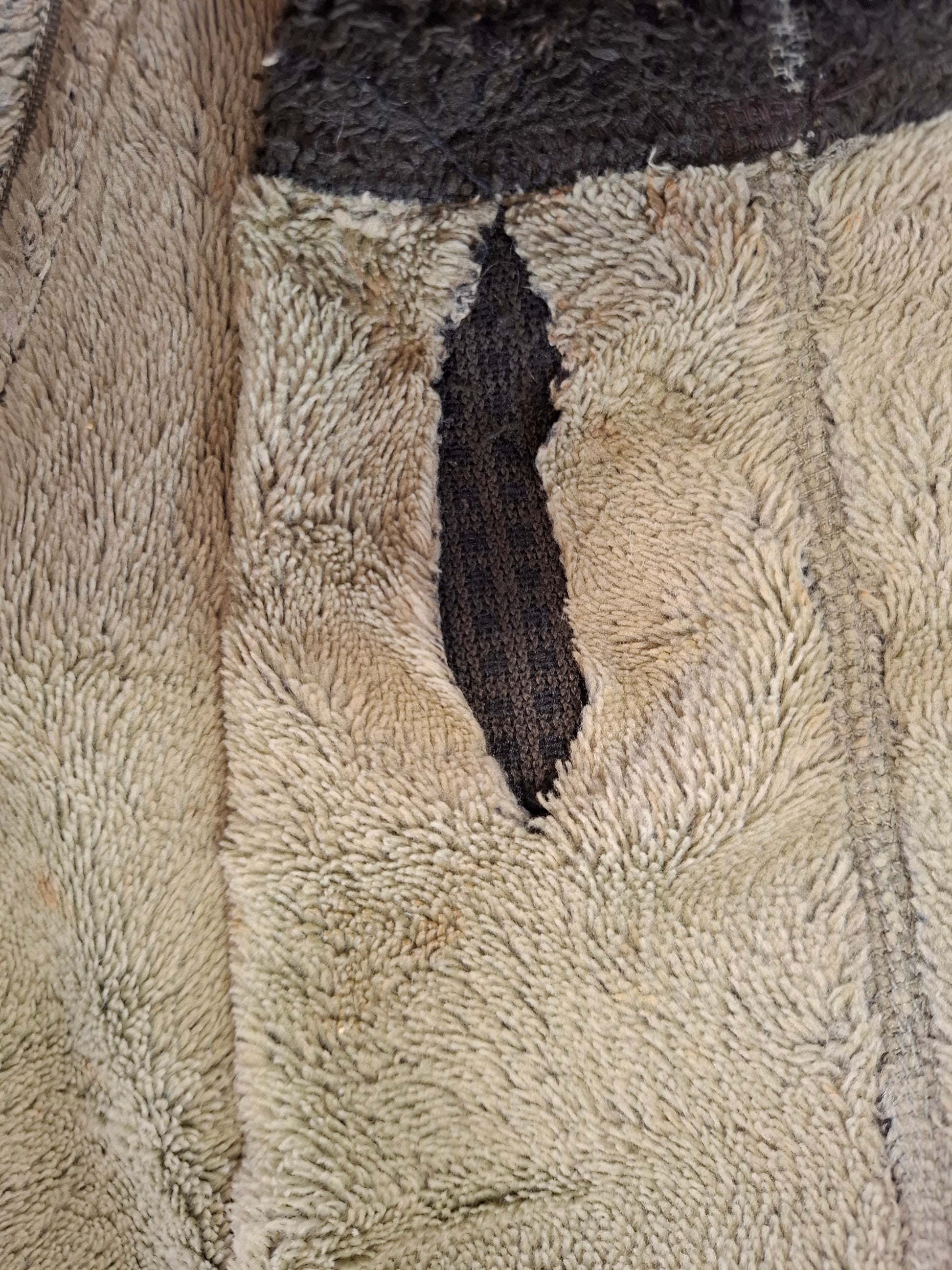 Tear in tight sleeve/ cuff.