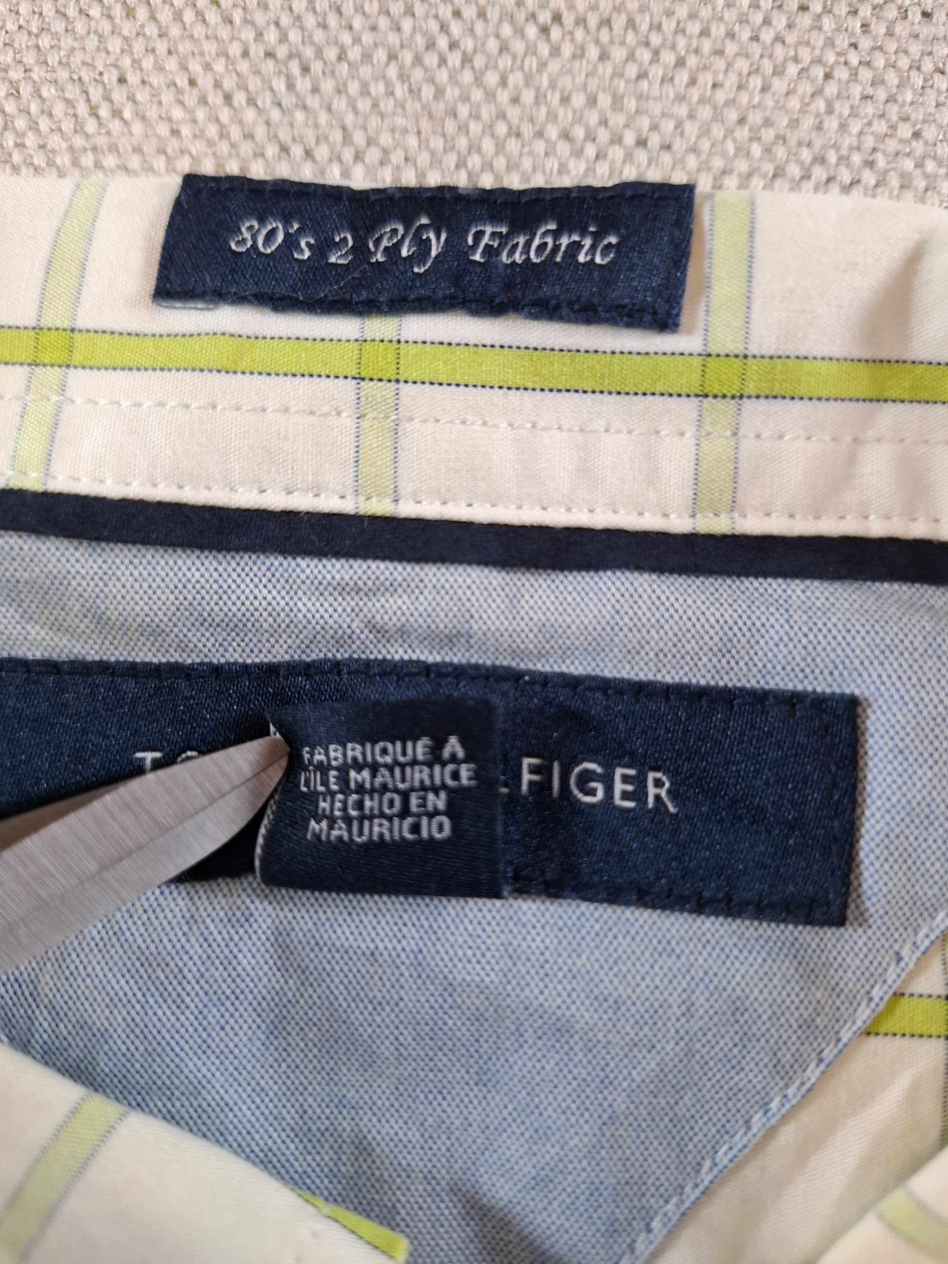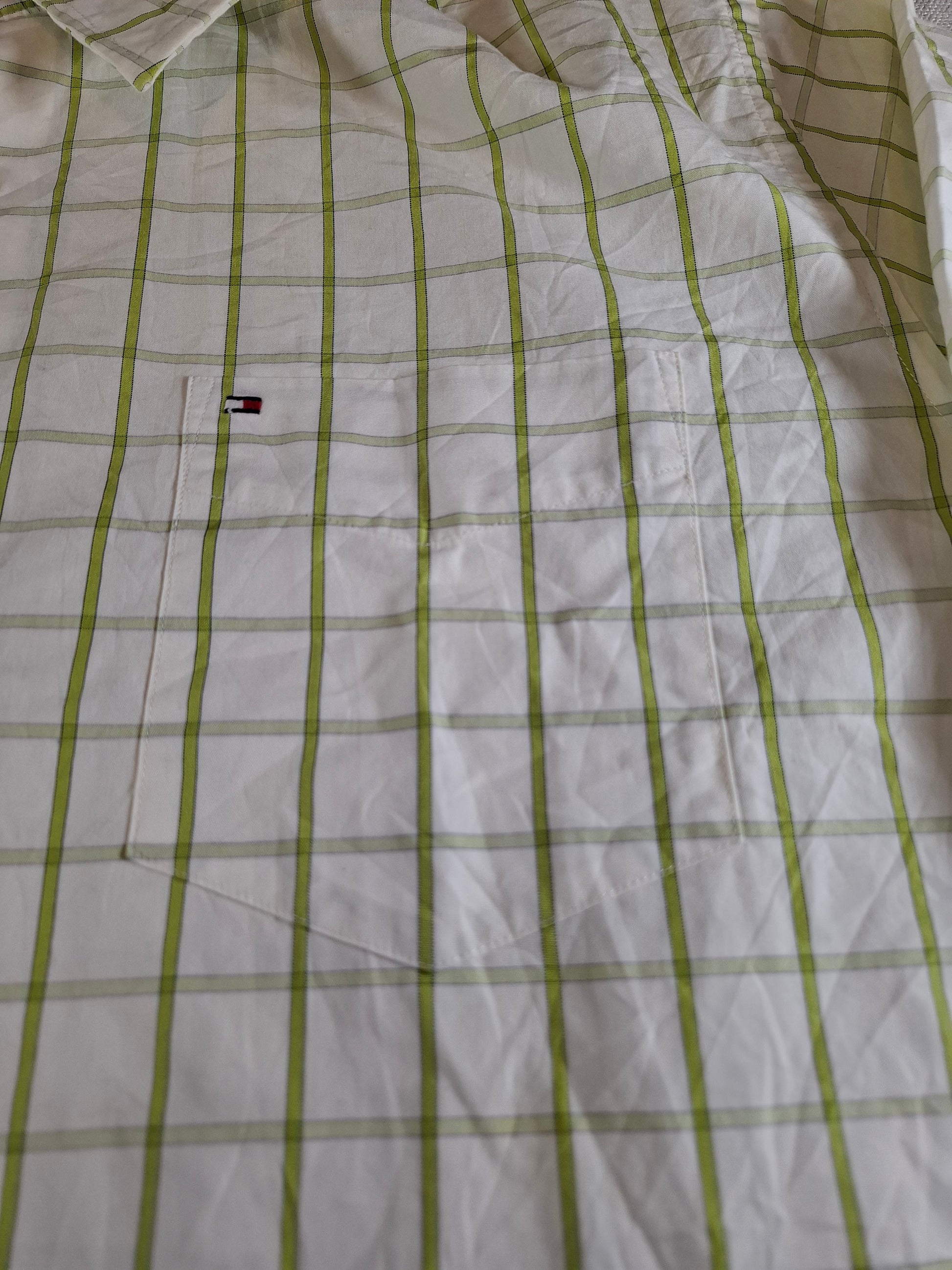 001093 Tommy Hilfiger Button down shirt size 16,5-17 / L Green/ White checkered