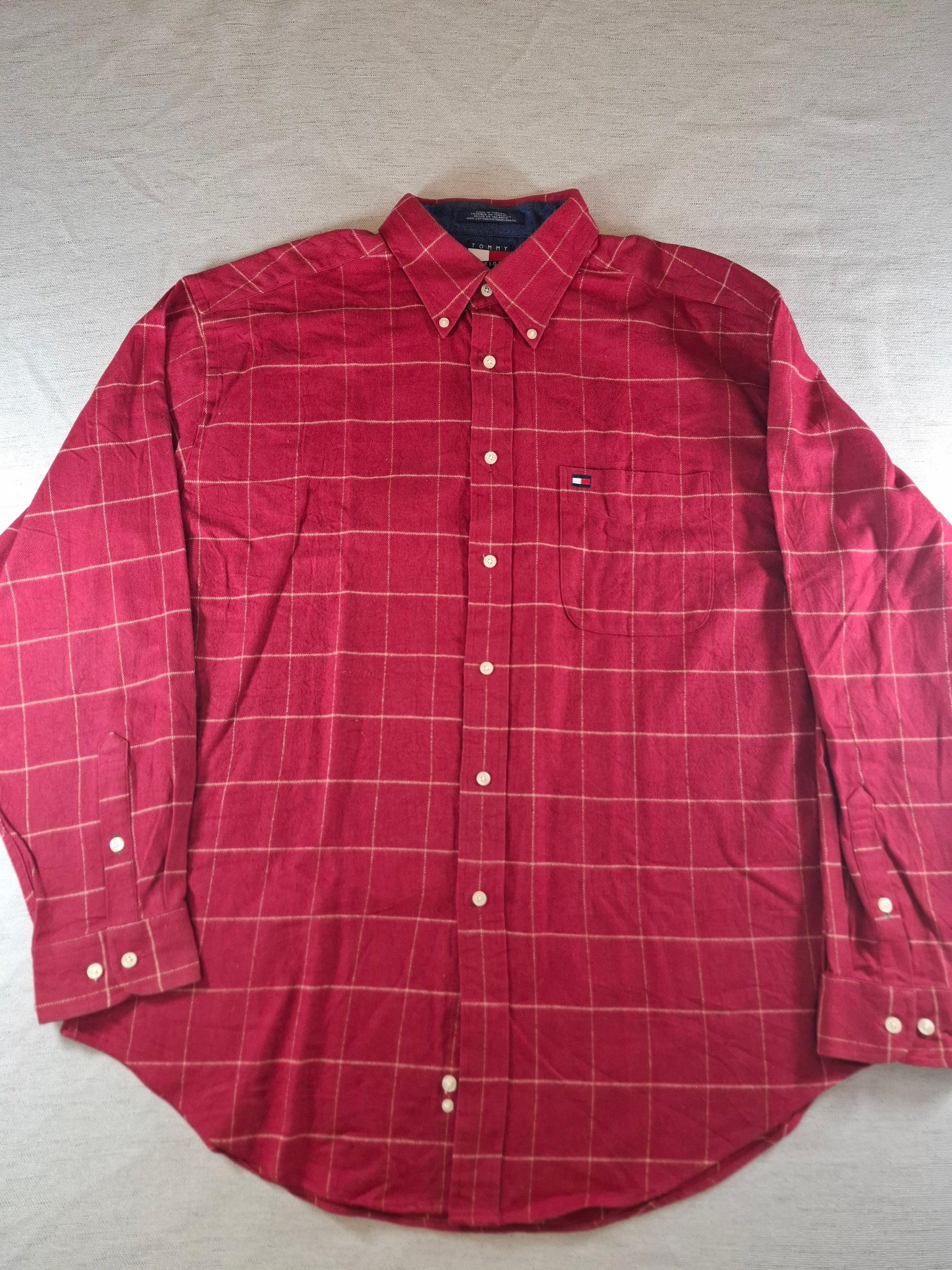 001090 Tommy Hilfiger Button down shirt size L Red/ White checkered