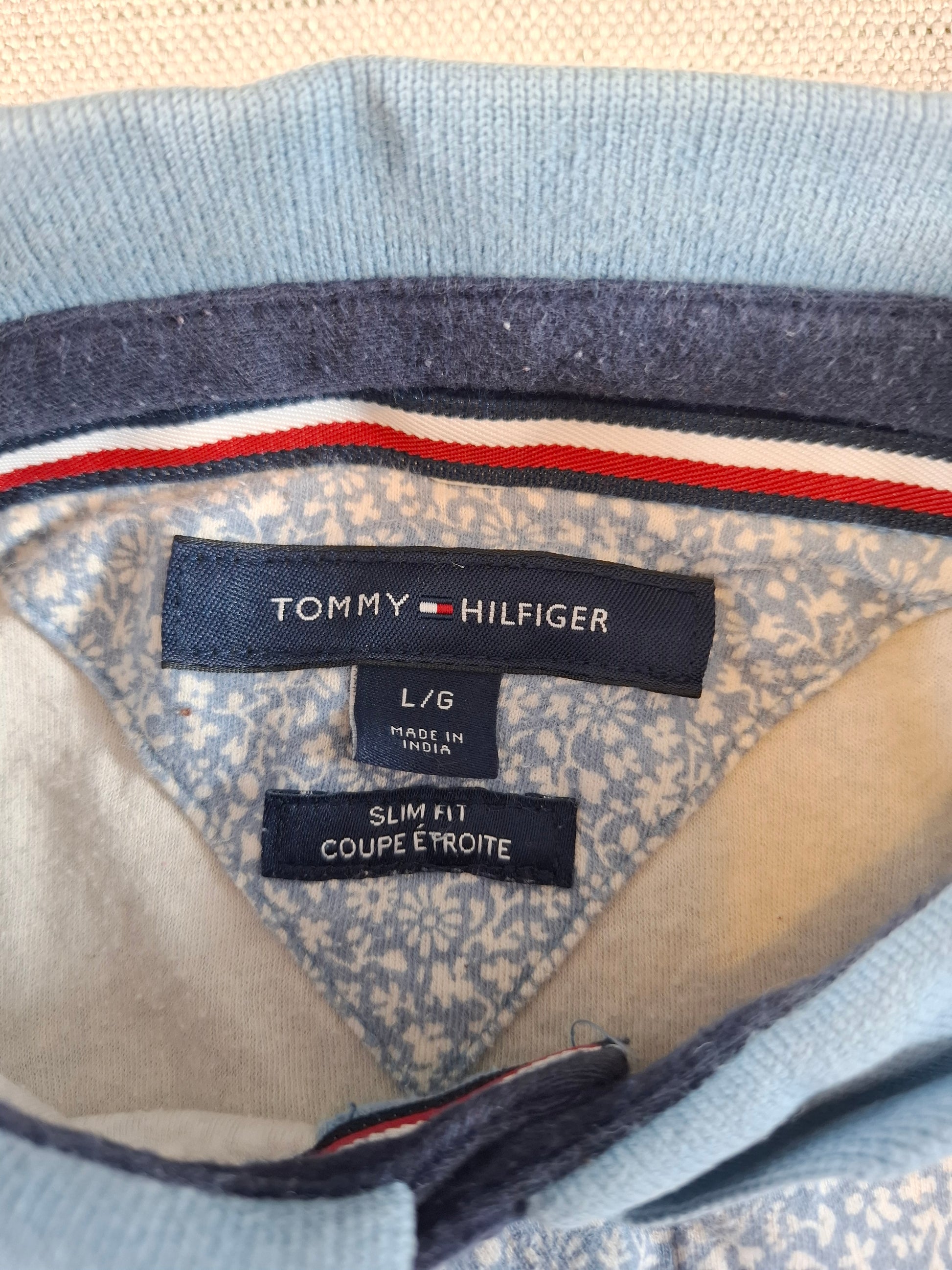 001058 Tommy Hilfiger Polo size L Light blue White