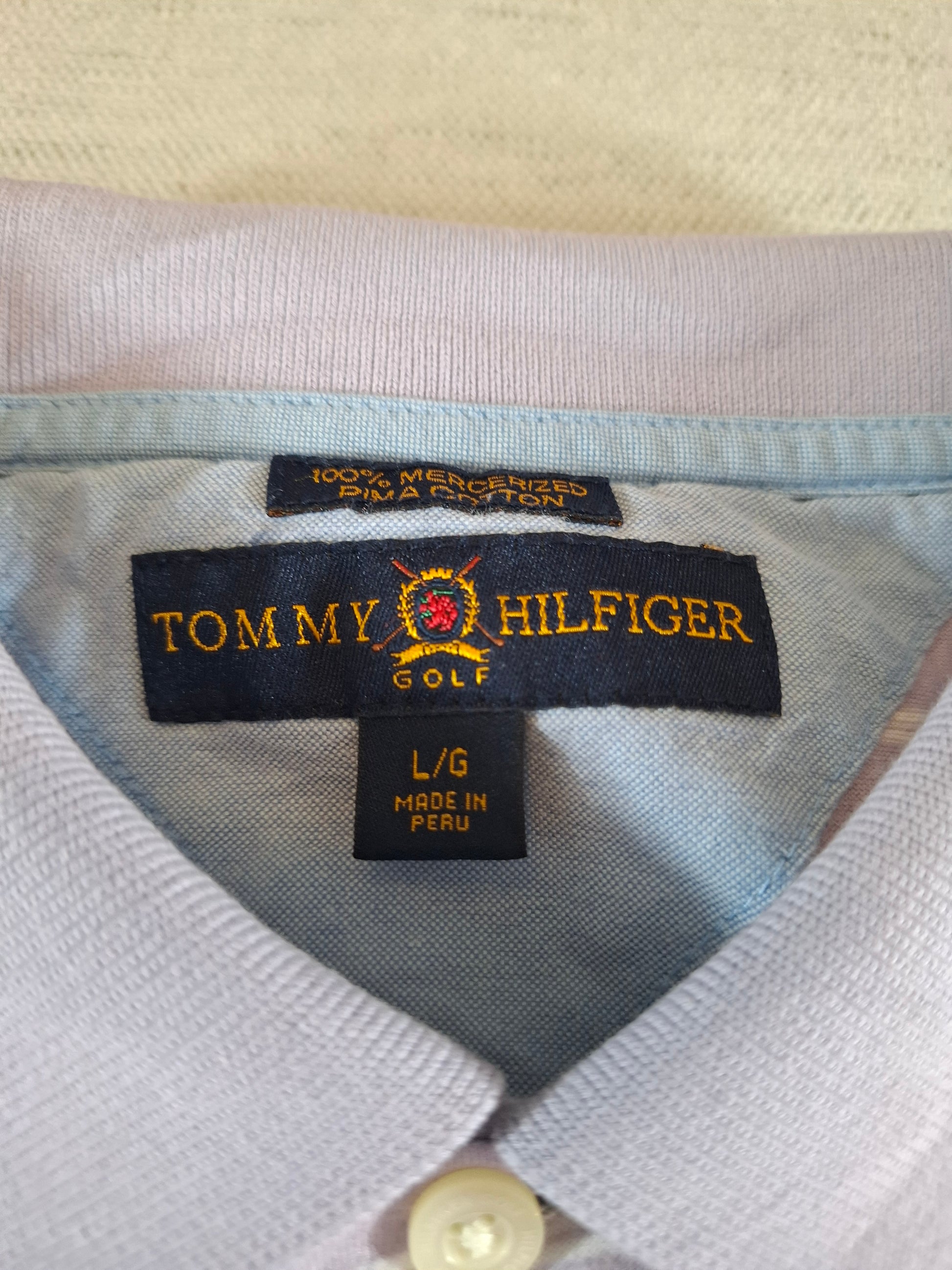 001113 Tommy Hilfiger Polo size L Lila/ White striped